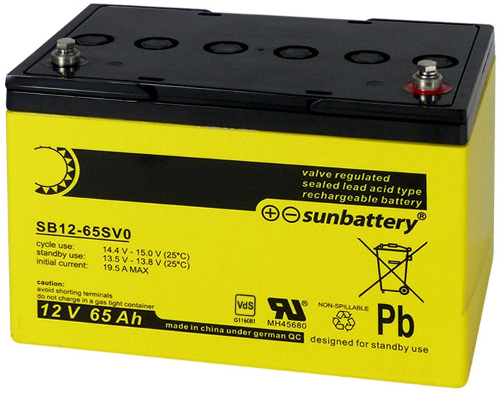 Аккумуляторная батарея 12В/ 65Ач, свинцово-кислотная. Габаритные размеры: 275х220х170 мм.