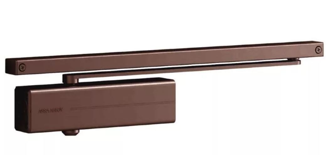 Шестерённо-реечный доводчик, с антивандальным клапаном и ветровым тормозом (BC), усилие EN3 cо скользящей тягой (G143). Коричневый.