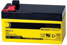Аккумуляторная батарея 12В/ 1,2Ач, свинцово-кислотная. Габаритные размеры: 97х43х52 мм. Вес 0,6 кг.