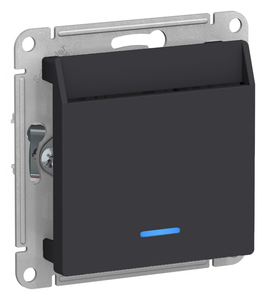 Выключатель Systeme Electric (ранее Schneider Electric) серии AtlasDesign в цвете карбон карточный подходит для сетей 250 В, на ток 10 А.