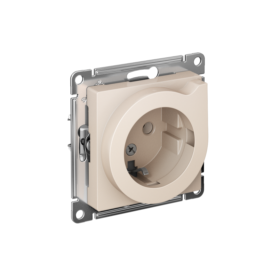 Механизм Systeme Electric (ранее Schneider Electric) серии AtlasDesign в цвете бежевый розетки одинарной с заземлением, шторками с выталкивателем подходит для сетей 250 В, на ток 16 А. Заземляющий контакт обеспечивает дополнительную защиту от удара электрическим током. Оснащена специальным механизмом: рычаг при повороте выталкивает вилку из розетки, что особенно удобно при частом подключении к розетке массивных вилок от бытовых приборов. Продается упаковками по 15 штук