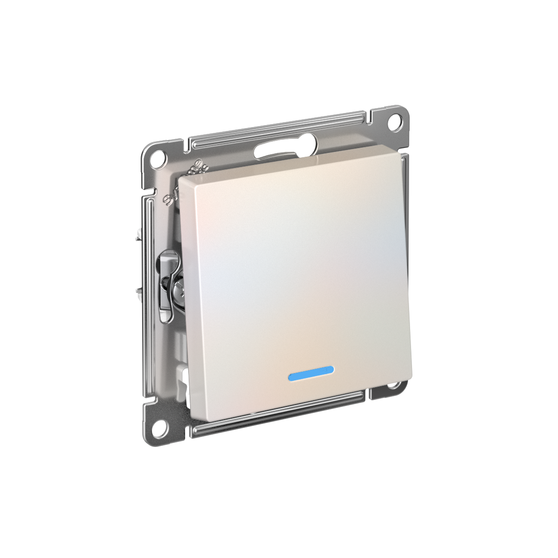 Механизм выключателя 1-клавишного с подсветкой Systeme Electric (ранее Schneider Electric) серии AtlasDesign в цвете жемчуг подходит для сетей 250 В, на ток 10 А. Благодаря светодиодной подсветке синего цвета изделие легко найти в темноте. Лицевые детали из качественного ABS-пластика, устойчивого к царапинам и УФ-излучению. Усиленные прямые монтажные лапки для лучшей фиксации механизма в монтажной коробке. Продается упаковками по 10 штук