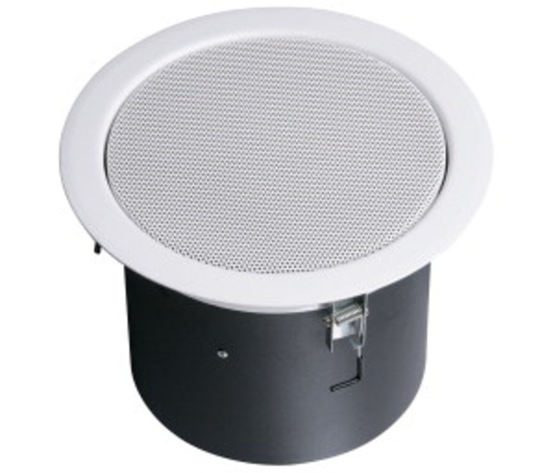Потолочный громкоговоритель 6/3/1,5/0,75 Вт, 100 В. От 90 Гц до 20 кГц. Экономичный потолочный громкоговоритель. Рама громкоговорителя, решетка и задний короб изготовлены из самозатухающего АБС. Установка в потолок с помощью 2 встроенных пружинных рычагов, Белого цвета.