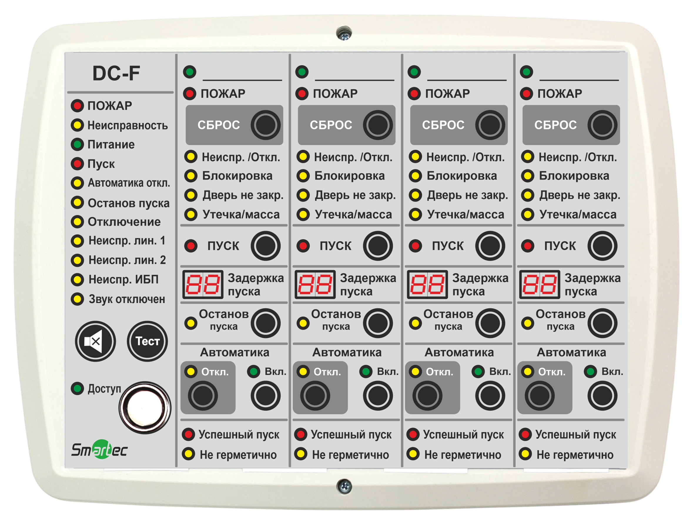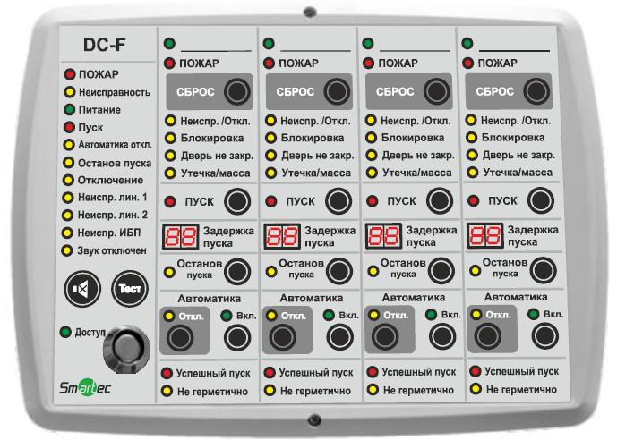 Устройство имеет 32 многоцветных индикатора и 32 кнопки, с возможностью задания любого значения каждому индикатору и каждой кнопке (состояние раздела, тревоги, неисправности, взятие/снятие раздела с охраны по кнопке и.т.д.). Разблокировка органов управления (согласно уровня доступа) по ключам Touch Memory. Питание 12-24В.