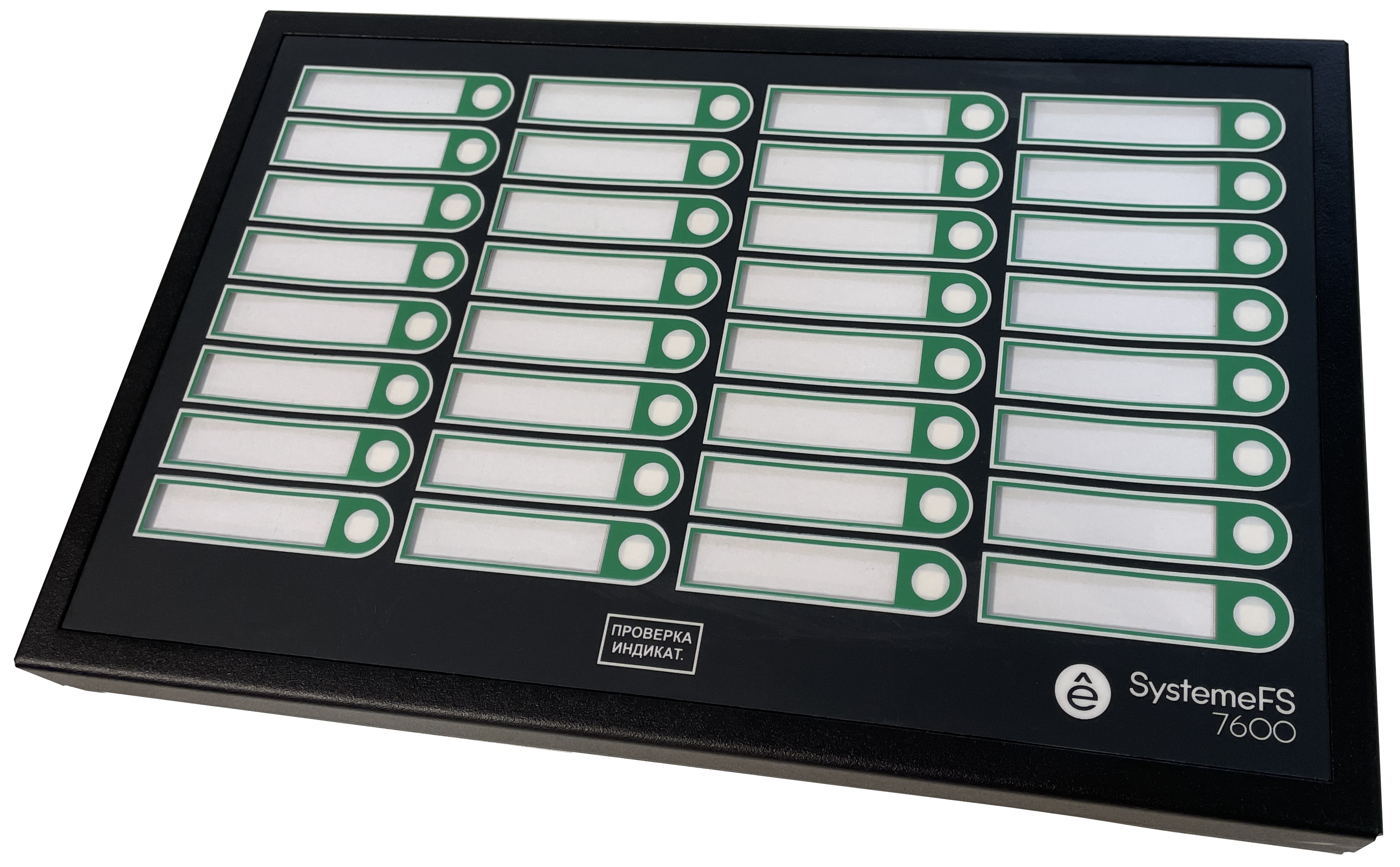 Табло индикации на 32 зоны в системе АПС из ППКПиУ серии SystemeFS-7600. Подключение к линии S2 (до 4 табло на каждую линию, до 16 табло на ППКПиУ), накладной монтаж, внешнее питание 24в, встроенный изолятор КЗ. Степень защиты IP30. Диапазон напряжений питания: 18...28,5 VDC. Диапазон рабочих температур 0...+60 °С. Габаритнын размеры: 255х164х29 мм.