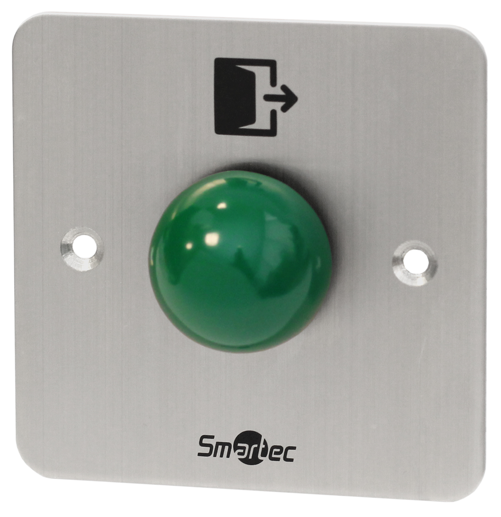 Как правило, кнопка выхода устанавливается внутри помещений и не зависит от считывающих устройств. Принцип работы любой такой кнопки весьма прост: после ее срабатывания в СКУД подается соответствующий сигнал. Получив его, контроллер на некоторое время разблокирует запирающий механизм, что позволяет человеку, инициировавшему запрос на выход, покинуть помещение. Представленные кнопки выхода имеют различные характеристики, и отличаются размерами, материалом изготовления (металлическая или пластиковая), типом установки (врезная или накладная) и ресурсом циклов срабатывания. Среди данных моделей необходимо отдельно упомянуть инфракрасные и пьезоэлектрические устройства. ИК кнопка обеспечивает бесконтактное срабатывание на расстоянии 0,1−10 см и максимально удобна в использовании. Пьезоэлектрическая кнопка выхода не имеет движущихся частей, что обуславливает полную герметичность ее электроники и устойчивость к атмосферным воздействиям.