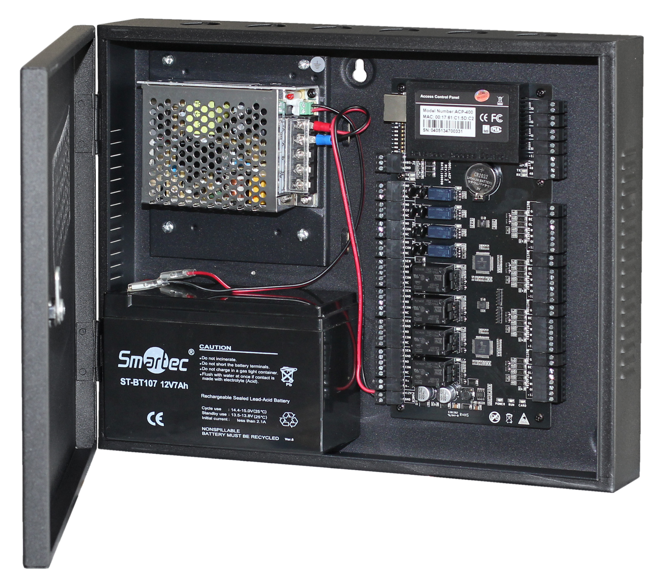 Контроллер – своего рода «мозг» системы контроля доступа. Обычно он имеет энергонезависимую память, в которой хранится идентификационная информация – коды идентификаторов, зарегистрированные пользователи и их полномочия, информация о событиях в системе и т.п. Автономные контроллеры предназначены для одно- или двухдверных СКУД и зачастую объединены в одном корпусе со считывателем, а сетевые устройства применяются для построения масштабных систем с дополнительными функциями, например, учета рабочего времени, контроля перемещения работников по территории предприятия и т.д. Помимо этого, контроллеры СКУД различаются между собой количеством обслуживаемых точек доступа, пользователей, подключаемых считывателей и событий в памяти устройства.