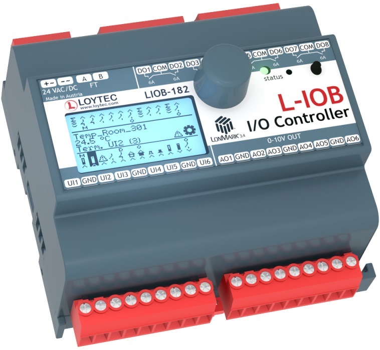 LIOB-182 Программируемый контроллер, LonMark TP/FT‑10, 6 UI, 6 AO, 8 DO (8 x Реле 6 A)
