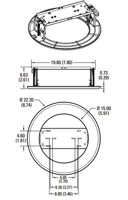Кронштейн для запотолочного монтажа купольных панорамных камер: PNM-9000VQ/9030V