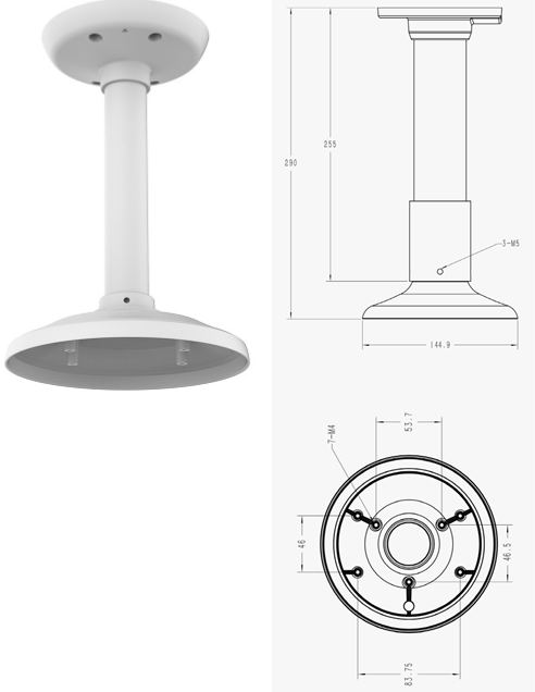 Кронштейн потолочный для монтажа выносных видеомодулей SLA-T2480/SLA-T2480A; размеры Φ89.9x54.7 мм, вес 65 гр.; материал пластик, цвет белый