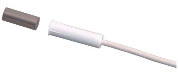Магнитоконтактный извещатель, врезной монтаж, кабель 44 см., герметичный корпус, цвет белый. Максимальное коммутируемое напряжение геркона 100 В, максимальный коммутируемый ток 0,5 A, расстояние замыкания контактов геркона 19 мм, расстояние размыкания контактов геркона 20 мм, габаритные размеры корпуса магнита (мм): ø11 x 14,5. Диапазон рабочих температур - 30°C...+ 65°C.