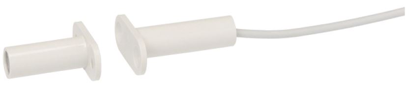 Магнитоконтактный извещатель, врезной монтаж, кабель 44 см.,  герметичный корпус, цвет белый. Максимальное коммутируемое напряжение геркона 100 В, максимальный коммутируемый ток 0,5 A, расстояние замыкания контактов геркона 19 мм, расстояние размыкания контактов геркона 20 мм, габаритные размеры корпуса магнита (мм): ø11 x 14,5. Диапазон рабочих температур - 30°C...+ 65°C.