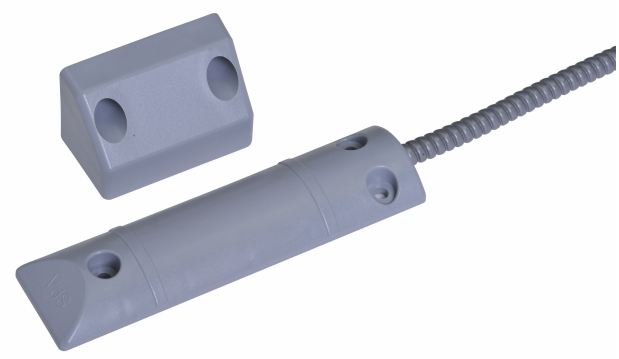 Неадресный магнитоконтактный извещатель для металлических ворот, накладной, рабочий зазор 20-57 мм, армированный кабель длиной 1 м, IP65, серый. Диапазон рабочих температур: -25...+70°С. Габаритные размеры: магнит: 65х42х35 мм, геркон: 150х40х13,5 мм.