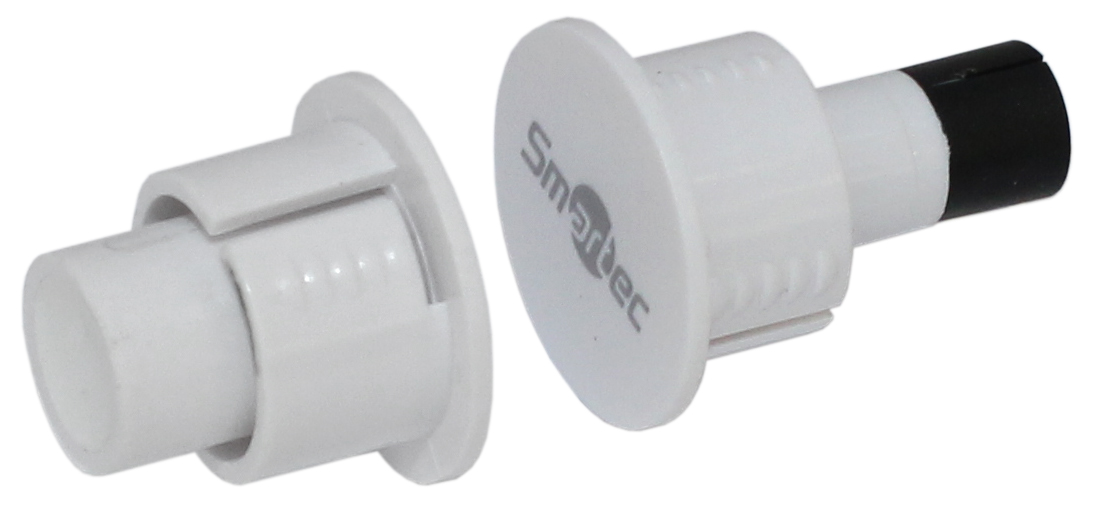 Магнитоконтактный датчик, НЗ, белый, врезной для деревянных дверей, миниатюрный, зазор 25 мм