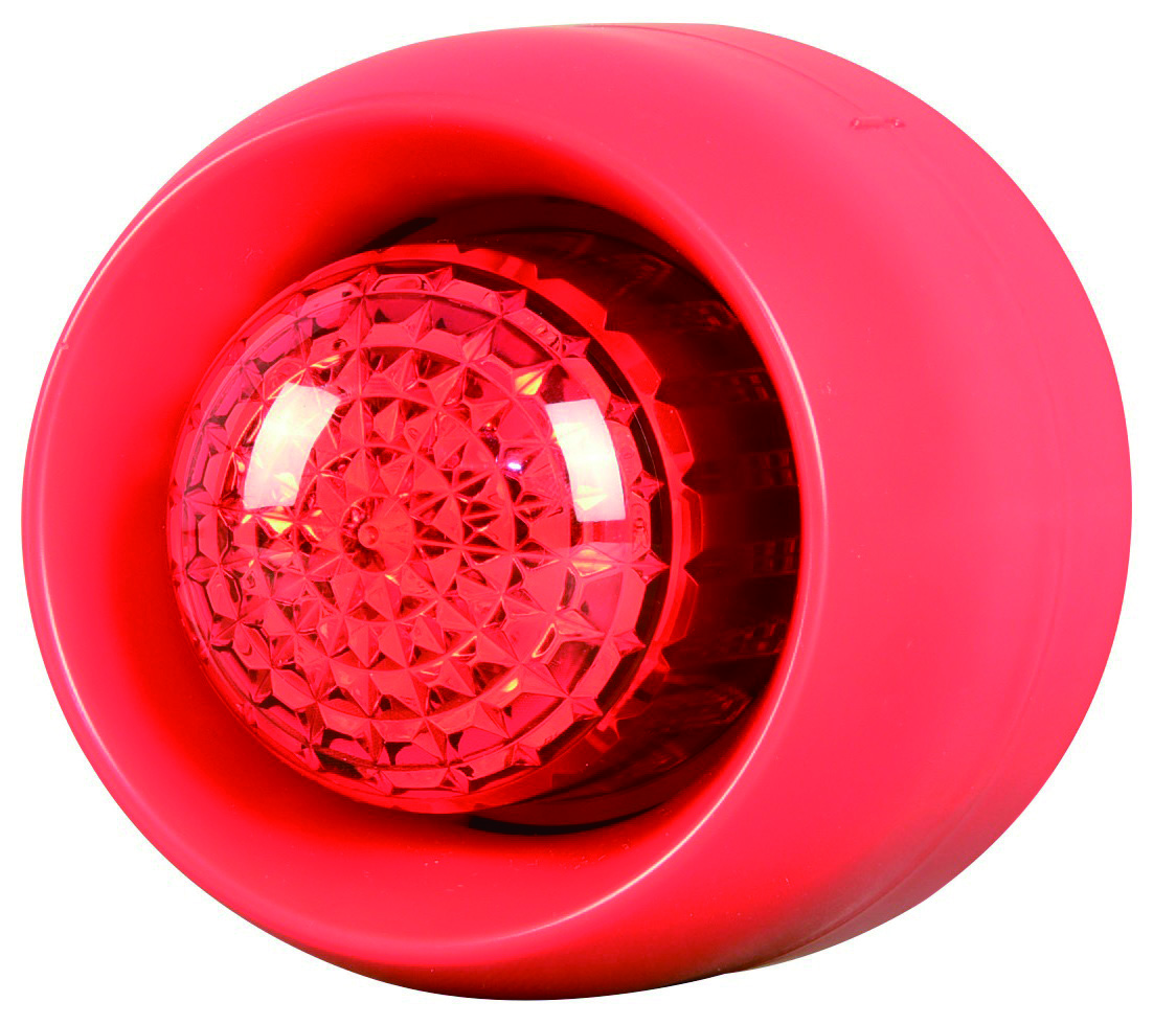Оповещатель комбинированный, 12 - 29В, высокая база, IP65, цвет корпуса - красный, вспышка - красная