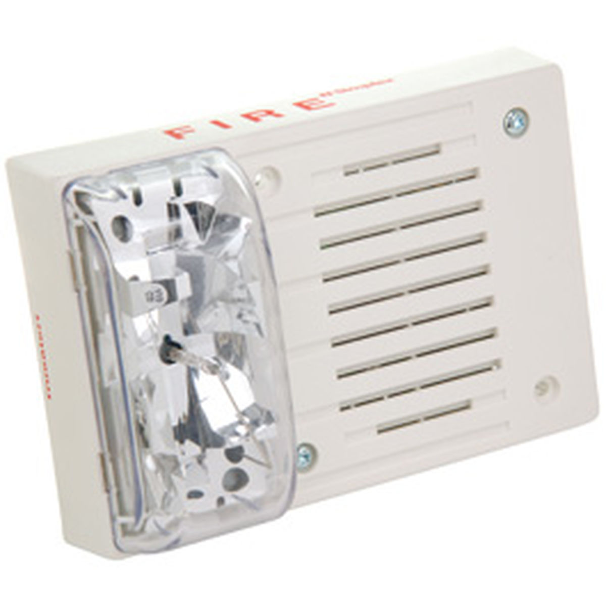 Неадресные комбинированный оповещатель сирена/строб влагозащищенный, A/V 24В, цвет корпуса белый с красным светом. Выбираемая интенсивность 15, 30, 75 кд, Выходная мощность звукового сигнала на уровне 3м ~до 101 дБ, Настенный монтаж