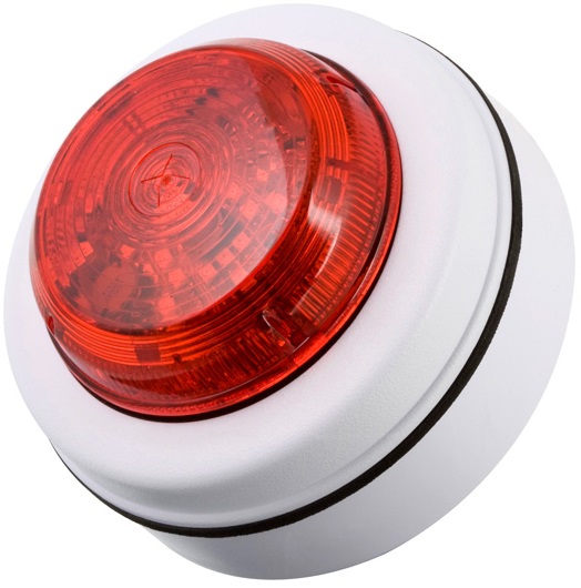 Неадресные комбинированный оповещатель сирена/строб, цвет корпуса красный с белым светом с синхронизацией A/V 24В. Светосила 110 кд, Выходная мощность звукового сигнала на уровне 3м ~до 84 дБ. Монтаж горизонтальный