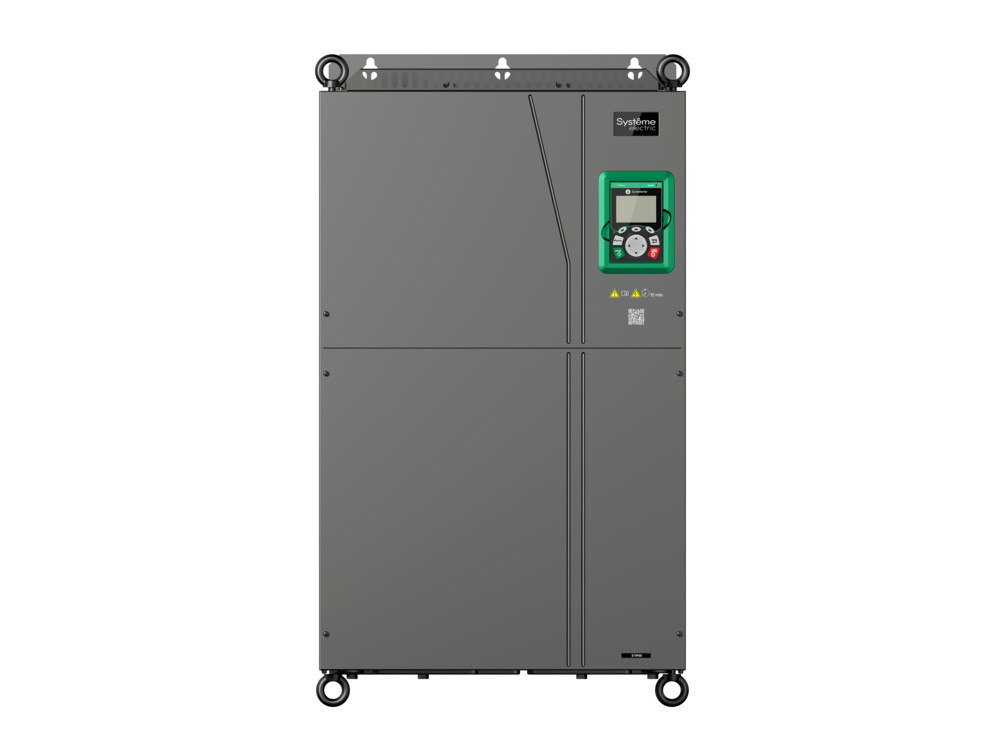 Преобразователь частоты SystemeVar 900 (STV900). Номинальная мощность: 400 кВт (G-тип: перегрузочная способность: 150% в течение 60с, 180% в течение 10с, 200% в течение 1с. Несущая частота ШИМ: 2 кГц), 450 кВт (P-тип: 120% в течение 60с. Несущая частота ШИМ: 2 кГц). Номинальный ток: 720 А (G-тип) / 820 А (P-тип). Питающее напряжение 3Ф 380В (-15%) ~ 440В (+10%). Степень защиты IP20. Габаритные размеры (ДхШхВ), мм: 620х560х1700. Вес: 350 кг.