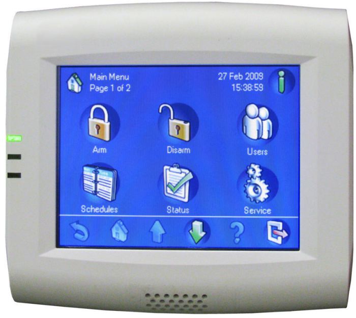 Пульт управления с сенсорным дисплеем для охранной панели MAP-5000. Резистивный дисплей, диагональ 5,7", разрешение 320х240, интуитивно понятный интерфейс с пиктограммами, мультиязычное меню (включая поддержку русского языка), встроенный динамик с регулируемой громкостью, 3 LED индикатора (питание, неисправность, тревога). К одной панели MAP-5000 возможно подключить до 32-х пультов управления. Диапазон напряжения питания: 16...29в, токопотребление: 175 мА в тревоге, 250 мА - при запуске. Габаритные размеры: 156х171х39 мм. Диапазон рабочих температур: -10...+55°С.