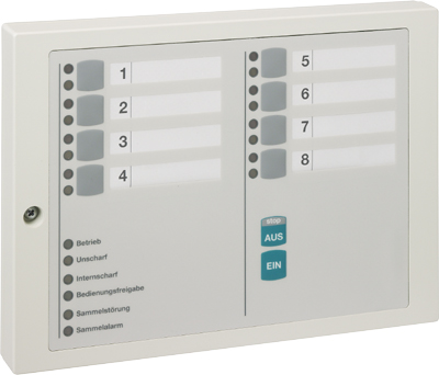 Блок индикации и управления на 8 разделов для ППКП серии MB-Classic. Подключается к шине BUS-2. Имеет 8 пар светодиодов (тревога и неисправность) состояний для каждого раздела, кнопки постановки/снятия разделов. Названия разделов можно распечатать на принтере прямо из конфигурационного ПО Winfem Advanced. Напряжение питания: 10-15VDC, класс защиты IP40, диапазон рабочих температур: -5°С...+45°С, Габаритные размеры: 192х142х32 мм. Для поверхностного монтажа необходимо заказать комплект 012546