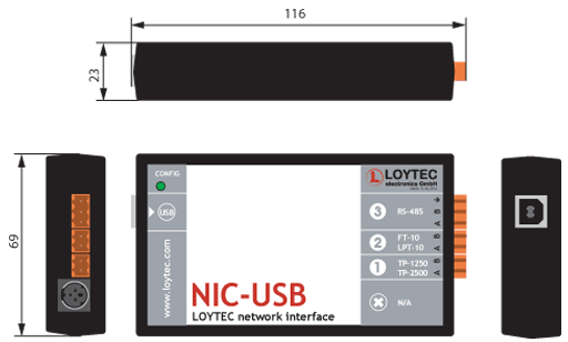 NIC709-USB100 Сетевой интерфейс, порт USB: TP/FT-10, TP/XF-1250, TR-RS485