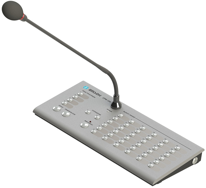 Пульт управления системой оповещения на 48 линий с микрофоном на гибком держателе. Подключается к БУСам MPU-20xx по линии RS-485. Диапазон входного напряжения: 24 В ± 20%. Диапазон рабочих температур : 0...+40 °С.