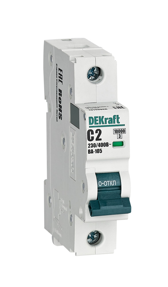 Автоматический выключатель серии ВА-105 Dekraft; 1P; ном. ток 2 А; характеристика C; откл. способность 10 кА; ширина модуля 18мм. Аппараты имеют механизм мгновенной коммутации, 6 монолитных заклепок, которые повышают прочность корпуса. Боковые каналы охлаждения повышают стабильность работы при высоких температурах окружающей среды. Есть возможность установки дополнительных аксессуаров с левой стороны устройства. Аппарат на 100% совместим с корпусами и оболочками Dekraft и Systeme Electric.