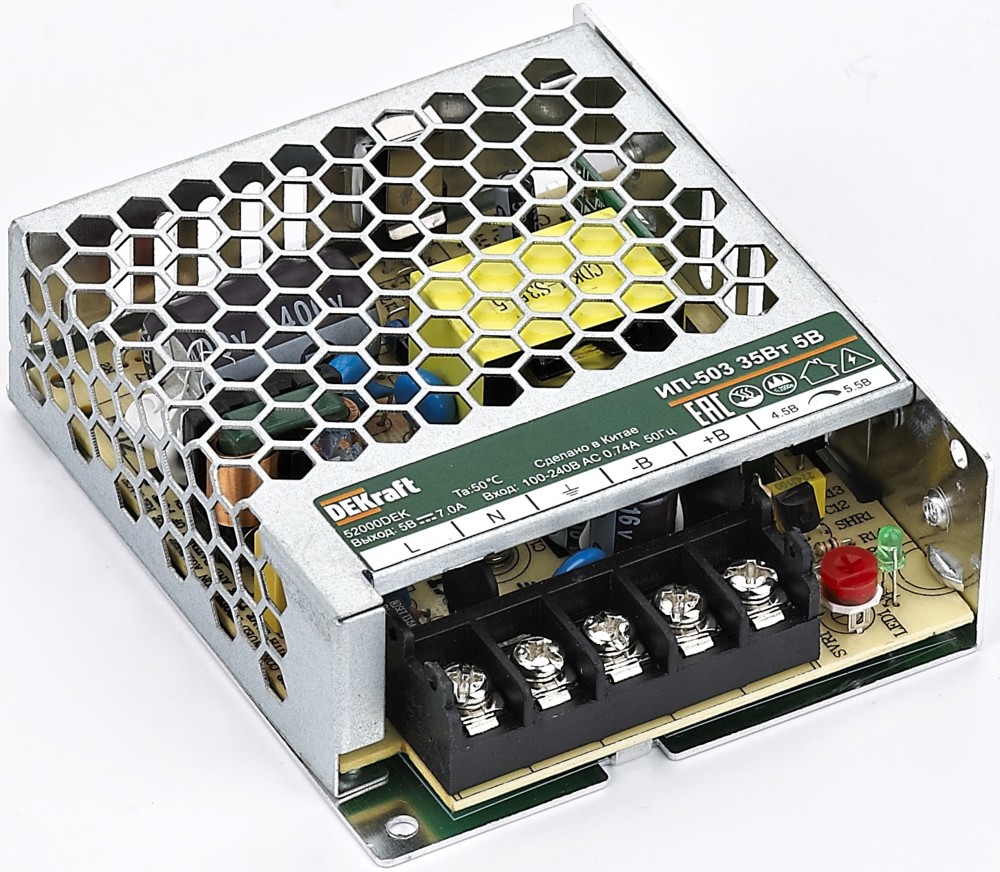 ИП-503 — это источник импульсный питания из серии ИП-500. Первичный импульсный источник питания имеет входное напряжение в широком диапазоне: 100–264 В переменного тока, номинальное входное напряжение составляет 230 В переменного тока (автоматический выбор). Номинальная выходная мощность 200 Вт, номинальный выходной ток 40 А при выходном напряжении 5 В постоянного тока. Выходное напряжение регулируется в диапазоне от 4,5 до 5,5 В постоянного тока. Источник питания обеспечивает выходную характеристику U/I.