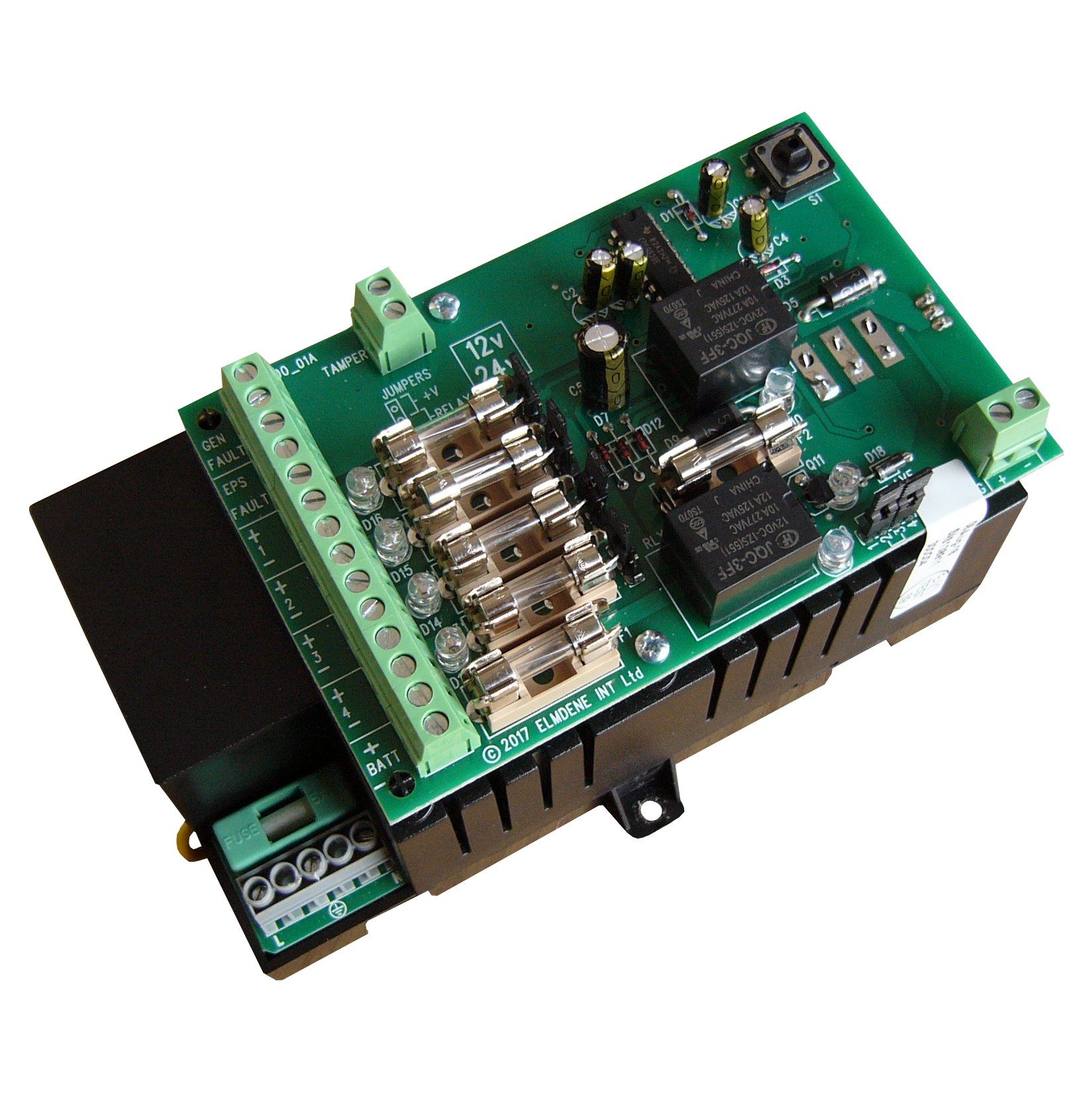 Блок питания импульсный для пожарных станций SystemeFS. Выходной ток 4,8А/24В, ток заряда АКБ до 3 А. Габаритные размеры: 98х78х72 мм.