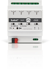 Универсальный релейный модуль управления электрооборудованием (освещение, вентиляторы). Телеграммы, принимаемые модулем с различных устройств KNX (например, датчиков), преобразуются в конкретные действия (включение/выключение) освещения или вентилятора. 4 релейных выхода (каждый соответствует одному логическому каналу). Свойства: связь с шиной KNX с помощью интегрированного шинного коплера; обратная связь о состоянии модуля и каждого из каналов; возможность настройки реакции каждого из каналов в случае пропадания и восстановления питания шины KNX; возможность настройки реакции каждого из каналов в случае восстановления сетевого питания; функции времени (мигание, задержка включения/ выключения, функция «лестничная клетка» с опцией предупреждения и изменением продолжительности действия); логические функции (AND, NAND, OR, NOR, XOR, XNOR); функция пороговых значений; функции безопасности; функции принудительной установки состояния; возможность вызова сцен для каждого из каналов с использованием 1- и 8-битных команд; управление состоянием каждого из каналов вручную с помощью кнопок на корпусе; светодиоды для отображения состояния каждого из каналов; возможность переключения резистивной, индуктивной и емкостной нагрузки; возможность монтажа на DIN-рейке (35 мм); настройка модуля с помощью ПО ETS. Габаритные размеры (мм): 70x92x60. Диапазон рабочих температур 0 °C...+45 °C