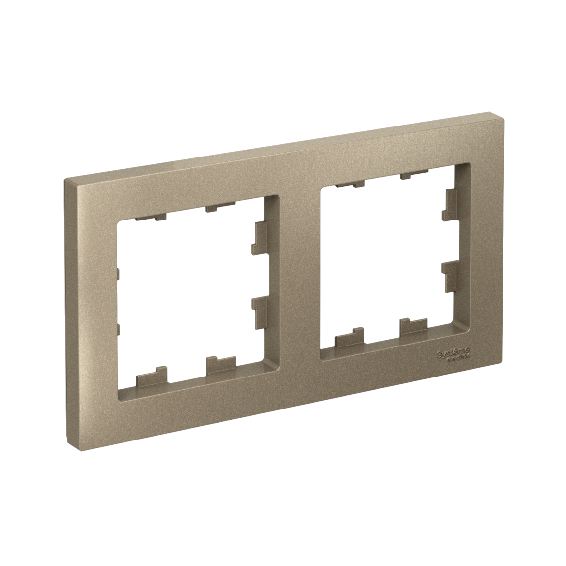 Рамка Systeme Electric (ранее Schneider Electric) серии AtlasDesign в цвете шампань двухместная. Устанавливается в вертикальном и горизонтальном положениях. Лицевые детали из качественного ABS-пластика, устойчивого к царапинам и УФ-излучению. Позволяет гармонично вписать электроустановочное изделие в интерьер помещения. Продается упаковками по 10 штук