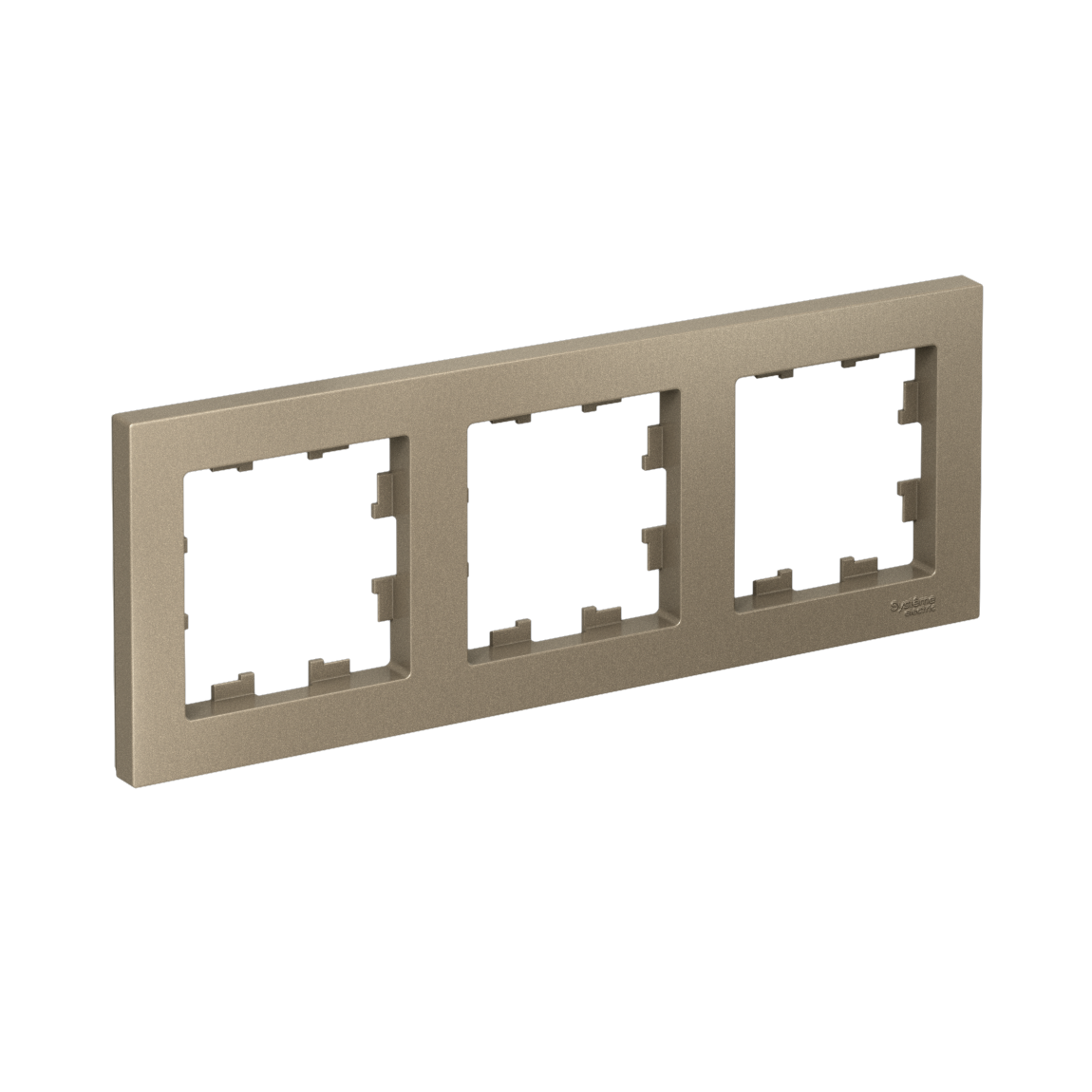 Рамка Systeme Electric (ранее Schneider Electric) серии AtlasDesign в цвете шампань трёхместная. Устанавливается в вертикальном и горизонтальном положениях. Лицевые детали из качественного ABS-пластика, устойчивого к царапинам и УФ-излучению. Позволяет гармонично вписать электроустановочное изделие в интерьер помещения. Продается упаковками по 5 штук