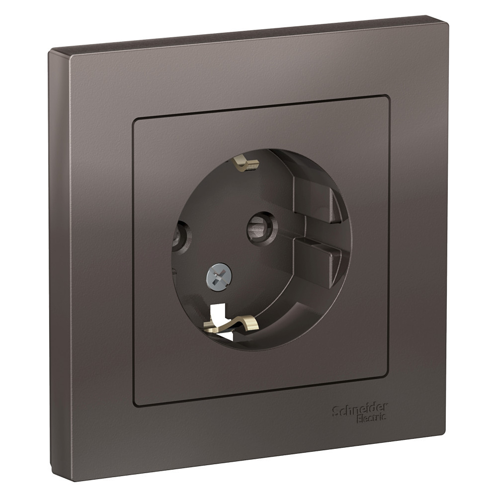 Механизм Systeme Electric (ранее Schneider Electric) серии AtlasDesign в цвете мокко розетки одинарной с заземлением и без шторок подходит для сетей 250 В, на ток 16 А.