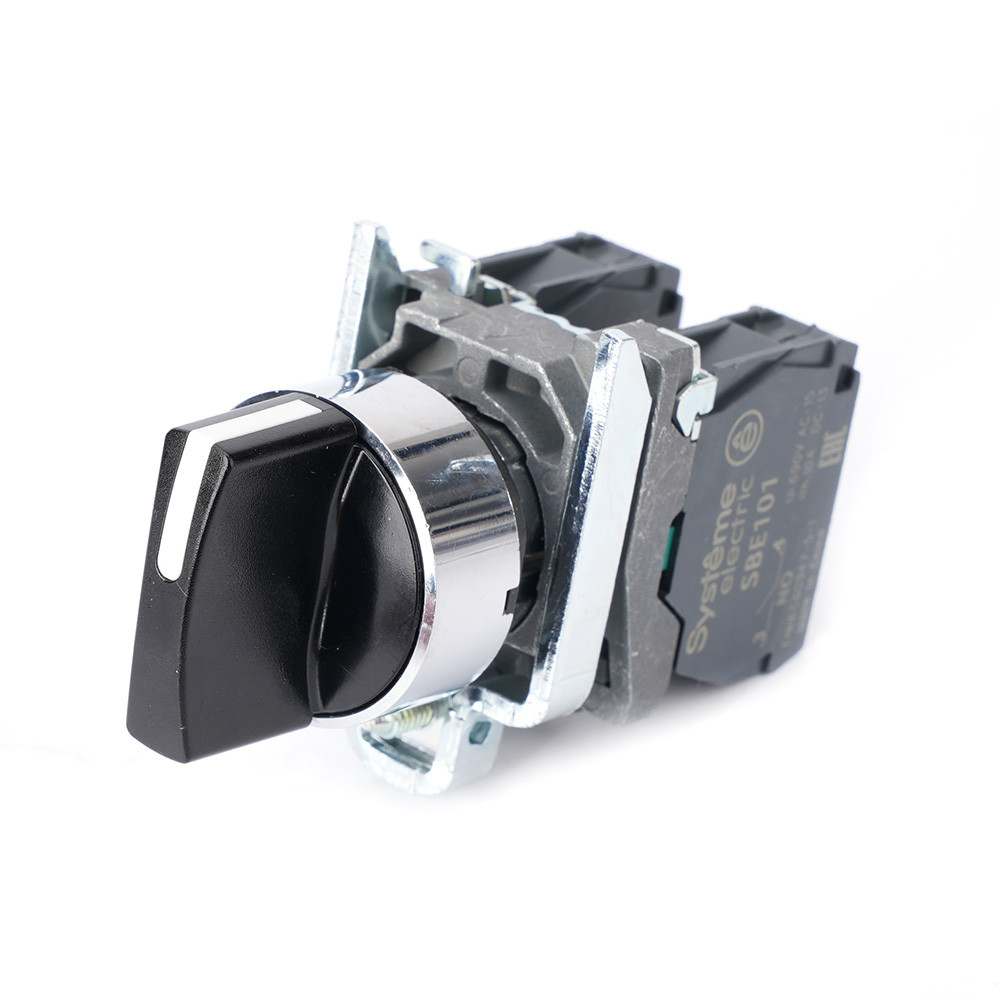 Переключатель сериии SB4 в сборе, модульный, для монтажа в отверстия диаметром 22 мм, 2-х позиционный, с фиксацией. Количество контактов: 1НО+1НЗ. Устройства управления и сигнализации SystemeSig находят широкое применение в технологическом оборудовании и машинах, шкафах распределения и управления, промышленных предприятиях, объектах инфраструктуры, гражданском строительстве (ранее Schneider Electric XB4BD25).