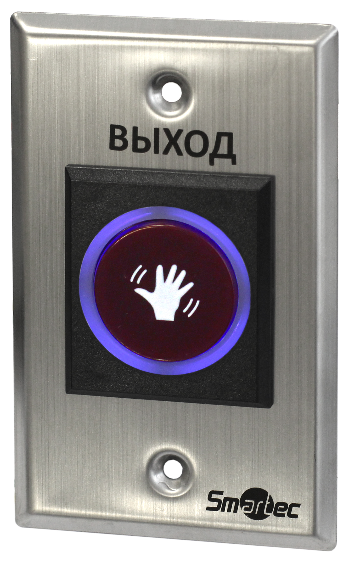 Как правило, кнопка выхода устанавливается внутри помещений и не зависит от считывающих устройств. Принцип работы любой такой кнопки весьма прост: после ее срабатывания в СКУД подается соответствующий сигнал. Получив его, контроллер на некоторое время разблокирует запирающий механизм, что позволяет человеку, инициировавшему запрос на выход, покинуть помещение. Представленные кнопки выхода имеют различные характеристики, и отличаются размерами, материалом изготовления (металлическая или пластиковая), типом установки (врезная или накладная) и ресурсом циклов срабатывания. Среди данных моделей необходимо отдельно упомянуть инфракрасные и пьезоэлектрические устройства. ИК кнопка обеспечивает бесконтактное срабатывание на расстоянии 0,1−10 см и максимально удобна в использовании. Пьезоэлектрическая кнопка выхода не имеет движущихся частей, что обуславливает полную герметичность ее электроники и устойчивость к атмосферным воздействиям.