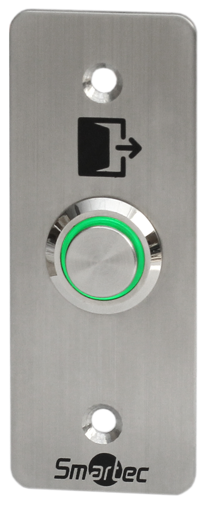 Как правило, кнопка выхода устанавливается внутри помещений и не зависит от считывающих устройств. Принцип работы любой такой кнопки весьма прост: после ее срабатывания в СКУД подается соответствующий сигнал. Получив его, контроллер на некоторое время разблокирует запирающий механизм, что позволяет человеку, инициировавшему запрос на выход, покинуть помещение. Представленные кнопки выхода имеют различные характеристики, и отличаются размерами, материалом изготовления (металлическая или пластиковая), типом установки (врезная или накладная) и ресурсом циклов срабатывания. Среди данных моделей необходимо отдельно упомянуть инфракрасные и пьезоэлектрические устройства. ИК кнопка обеспечивает бесконтактное срабатывание на расстоянии 0,1−10 см и максимально удобна в использовании. Пьезоэлектрическая кнопка выхода не имеет движущихся частей, что обуславливает полную герметичность ее электроники и устойчивость к атмосферным воздействиям.