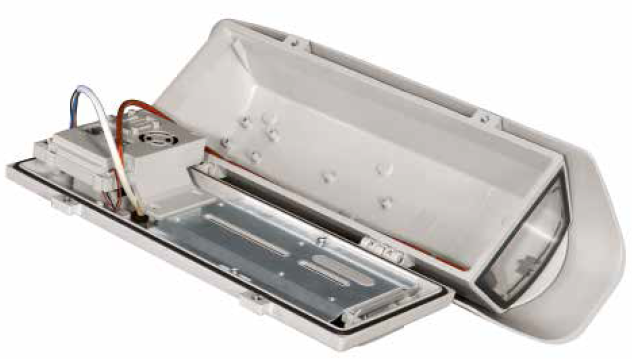 Термокожух (101х76х228 мм) с обогревателем, вентилятором, солнцезащитным козырьком и кронштейном настенным (EM20; интегрированный кабельный канал); IP66 (от -30°C до +50°C); 220В; встроенный источник электропитания для т/камеры (12В(DC))