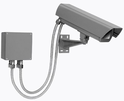 Уличный термокожух с обогревателем, размораживателем стекла и солнцезащитным козырьком; защита IP 66, NEMA 4x; размеры камера+объектив до 262мм; температура от -40º до +50ºC; входное питание 220В (АС) => выходное питание 12B (DС)
