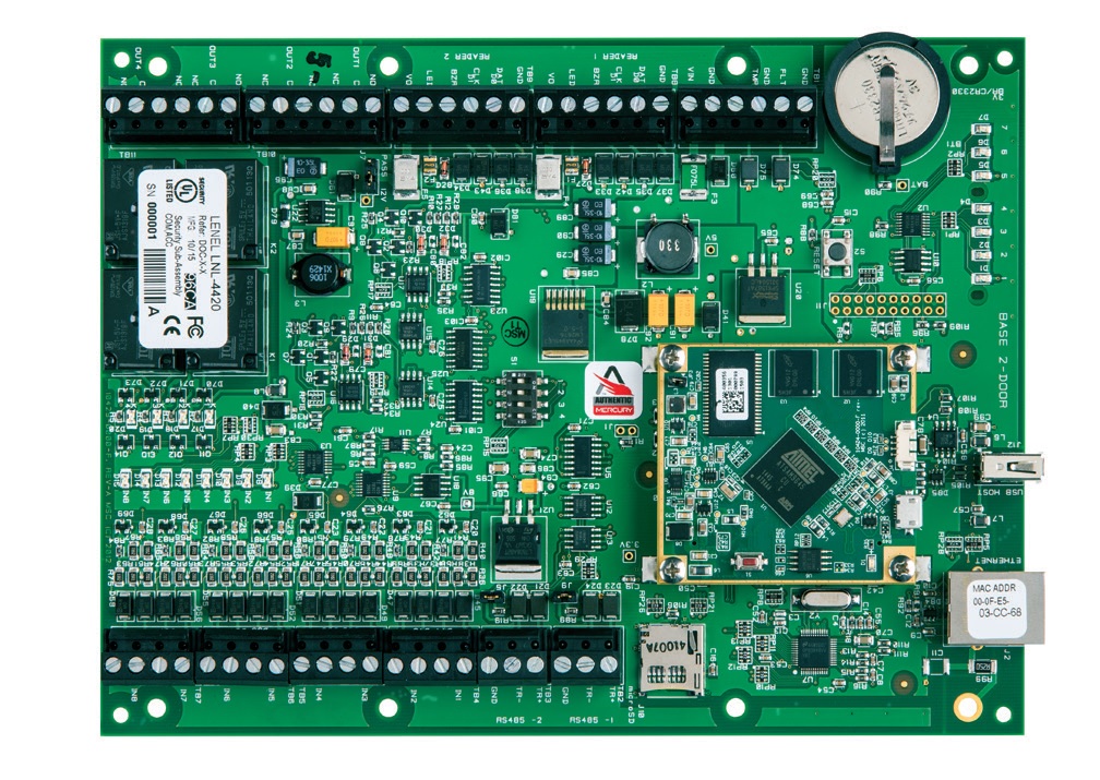 Контроллер – своего рода «мозг» системы контроля доступа. Обычно он имеет энергонезависимую память, в которой хранится идентификационная информация – коды идентификаторов, зарегистрированные пользователи и их полномочия, информация о событиях в системе и т.п. Автономные контроллеры предназначены для одно- или двухдверных СКУД и зачастую объединены в одном корпусе со считывателем, а сетевые устройства применяются для построения масштабных систем с дополнительными функциями, например, учета рабочего времени, контроля перемещения работников по территории предприятия и т.д. Помимо этого, контроллеры СКУД различаются между собой количеством обслуживаемых точек доступа, пользователей, подключаемых считывателей и событий в памяти устройства.