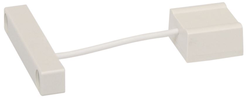 Магнитоконтактный извещатель врезной, пластмассовый корпус (белый), тамперный шлейф, монтаж вдавливанием - без употребления клея или шурупов, кабель 110 см., подключение проводов непосредственно внутри корпуса. Тип извещателей NC, максимальное переключаемое напряжение геркона 20 В, максимальный ток 20 mA, размеры (мм): Ø 7,2, длина 32,6. Диапазон рабочих температур - 30°C...+ 65°C.