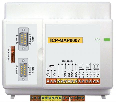 Модуль DE подключения коммуникатора и принтера для охранной панели MAP-5000. 3 программируемых выхода с контролем линии для подключения устройств оповещения, 2 программируемых выхода типа "открытый коллектор" без контроля линии, 2 порта RS-232 для подключения принтера DR2020T и коммуникатора. Диапазон напряжения питания: 16...29 VDC. Диапазон рабочих температур: -10...55°С. Габаритные размеры: 146х159х76 мм