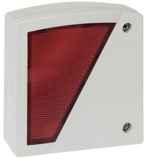 Неадресный оптический оповещатель, белый корпус (RAL9016) с красным рассеивателем, накладной монтаж, тамперная защита от вскрытия корпуса, два режима работы (импульсный и постоянный). Диапазон напряжения питания: 10...15VDC. Габаритные размеры: 85x87х34 мм. Диапазон рабочих температур: -5...+45 °С. Степень защиты IP32