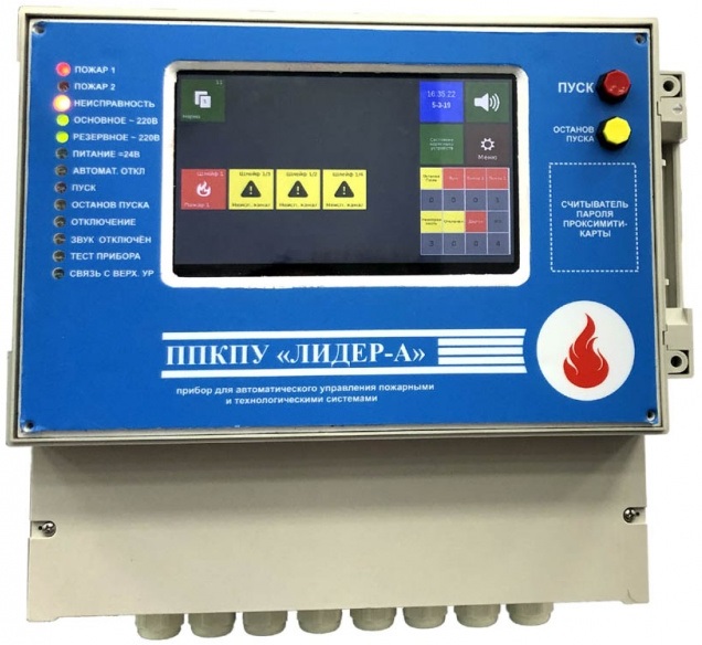 Прибор приёмно-контрольный и управления пожарный адресно-аналоговый «Лидер-А», на 10 адресных шлейфов, питание 220В. Диапазон рабочих температур -10...+50 °С. Степень защиты оболочки: IP54. Габаритные размеры: 296х281х158 мм.