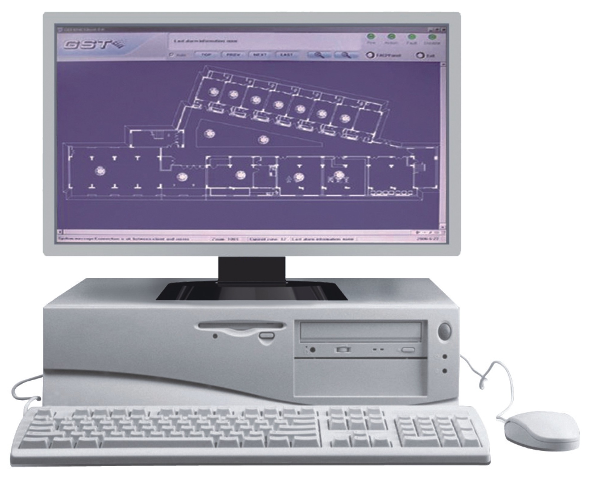 Графическое ПО для мониторинга и управления системы пожарной сигнализации GST. Клиент-серверная архитектура, подключение до 8 клиентских АРМов. Интеграция со сторонними системами через OPC. Подключение к ПК по интерфейсу RS-232.