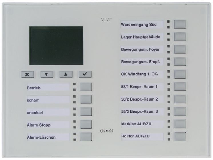 Белая накладная модульная LCD/LED-клавиатура для ППКП серии MB-Secure. Встроенный считыватель proX1/proX2, монохромный ЖК-дисплей, 15 свободно программируемых кнопок и 15 (желтый/красный/зеленый) светодиодных индикаторов с настраиваемой яркостью. Клавиатуры могут использоваться как совместно с основным сенсорным пультом управления TouchCenter plus, так и отдельно. Несколько клавиатур могут стыковаться в сборку по горизонтали и вертикали. Все клавиши имеют подсветку с настраиваемой яркостью. Цвет: белый (RAL9016). Питание от внешнего источника. Диапазон рабочих напряжений: 9...15VDC. Диапазон рабочих температур: -5…+45°С, IP40. Габаритные размеры: 218х162х20 мм. Белая лицевая панель 013020 и белое монтажное основание 013043 для накладного монтажа в комплект не входят и приобретаются отдельно!