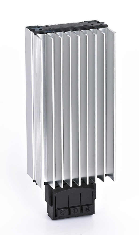 Резистивный нагреватель Dekraft. Мощность нагрева - 150 Вт. Напряжение питающей сети - 110 - 250 В АС. Монтаж на DIN-рейку, предназначен для поддержания оптимальной температуры воздуха внутри электротехнических шкафов. Он создает конвекционный поток воздуха, который предотвращает образование зон с низкой температурой. Также он защищает электрические компоненты от образования конденсата и замерзания при перепадах температуры, а также от коррозии металлических элементов активного оборудования.