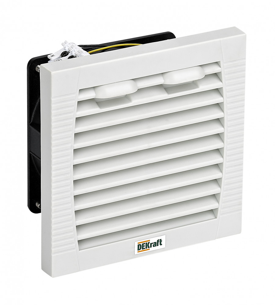 Вентилятор (с фильтром или без него) всасывает свежий воздух снаружи внутрь корпуса, создавая тем самым небольшое избыточное давление, которое приводит к удалению горячего воздуха через выпускную решетку. <br /> Циркуляция воздуха гомогенизирует температуру, а избыточное давление помогает предотвратить попадание пыли. Крепление сбоку или на крыше. Может комбинироваться с термостатом. Вентиляторы состоят из осевого двигателя, защитного кожуха на передней и задней поверхностях и фильтра, предназначенного для удержания частиц пыли. Этот фильтр может быть заменен во время работы без риска контакта с вращающимся элементом. <br /> Внешняя температура не должна превышать 35°C и должна быть более чем на 5°C ниже требуемой температуры в корпусе. Фильтры, которыми оснащены вентиляторы, необходимо регулярно чистить и заменять. При определении расхода вентилятора учитывайте потери давления, вызванные выпускным элементом (решеткой с фильтром, вентиляционной решеткой или простым отверстием).