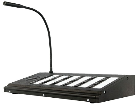 Микрофонная консоль для передачи голосовых сообщений и конфигурирования зон. 8 свободно программируемых кнопок. Возможности трансляции фоновой музыки и объявлений. Голосовая сигнализация, регулировка громкости, запись и мониторинг исправности системы.